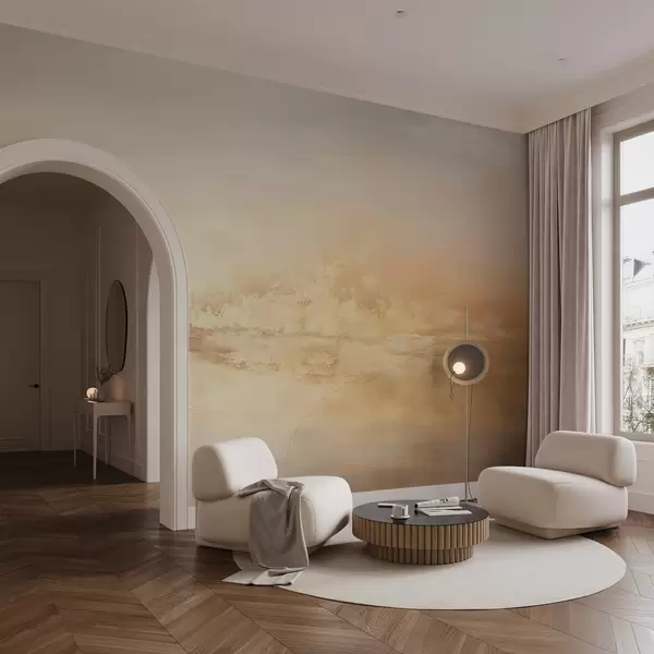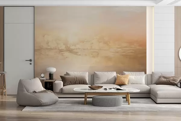 Фототапет Абстрактен текстуриран пейзаж с топли цветове, мека и мечтателна атмосфера и смесица от оранжеви, жълти и бели нюанси Nr w09063