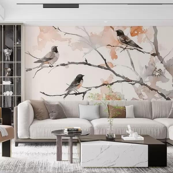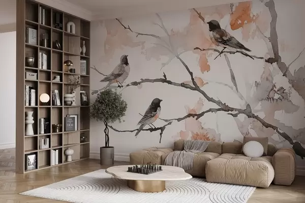 Фототапет Птици върху клоните на дърветата в акварелен стил Nr w09064v2