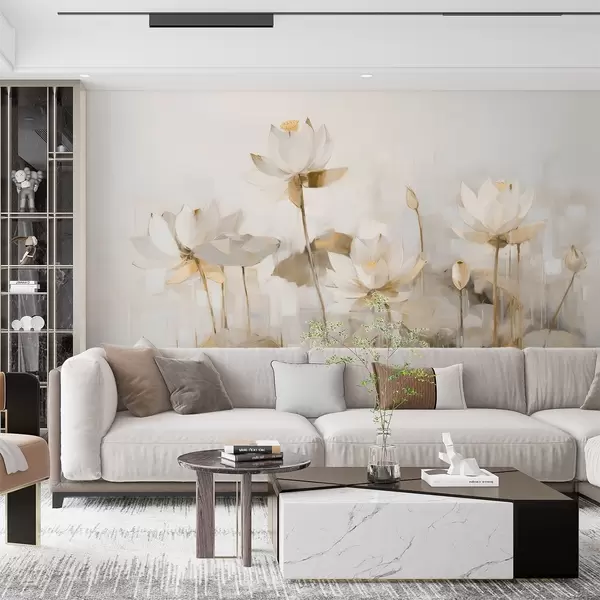Фототапет Деликатни цветя на лотос, нарисувани с акрил Nr w09067v2