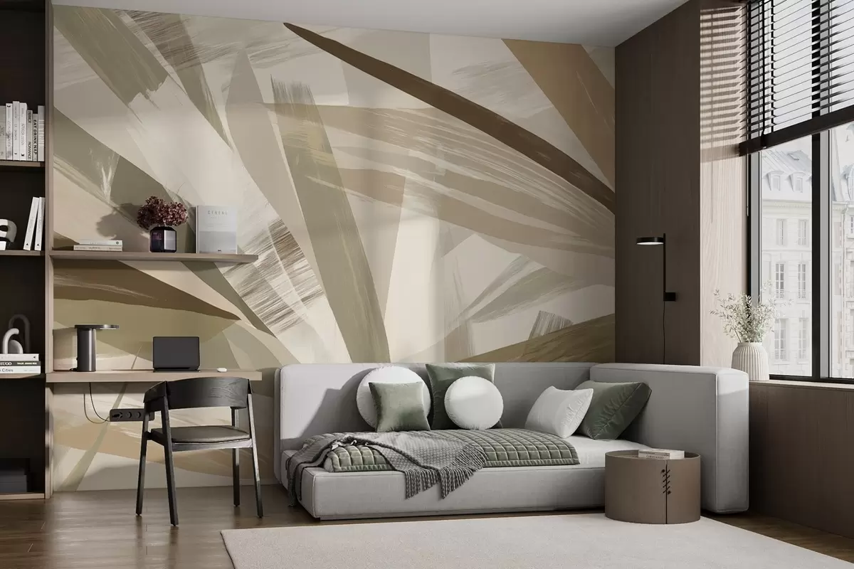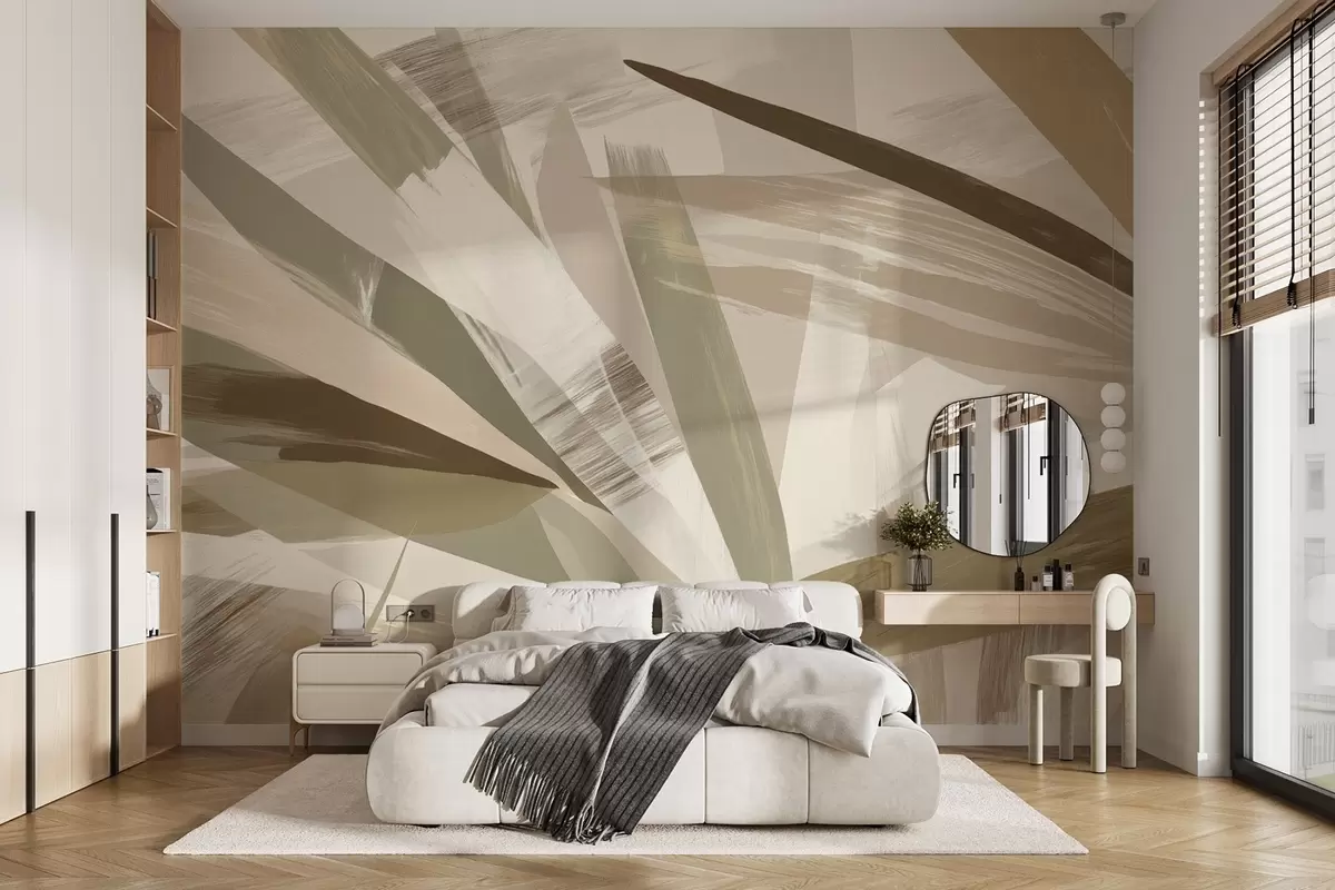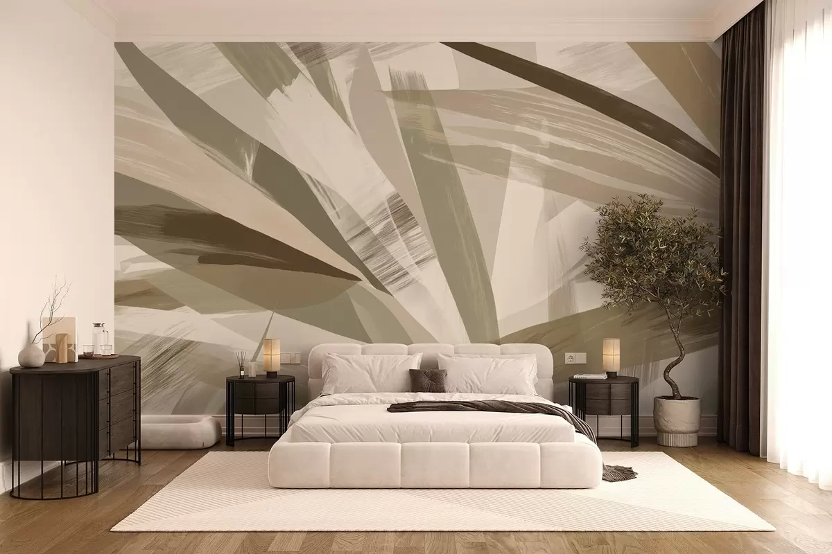 Фототапет Абстрактни листа в зелени и бежови тонове Nr w09091