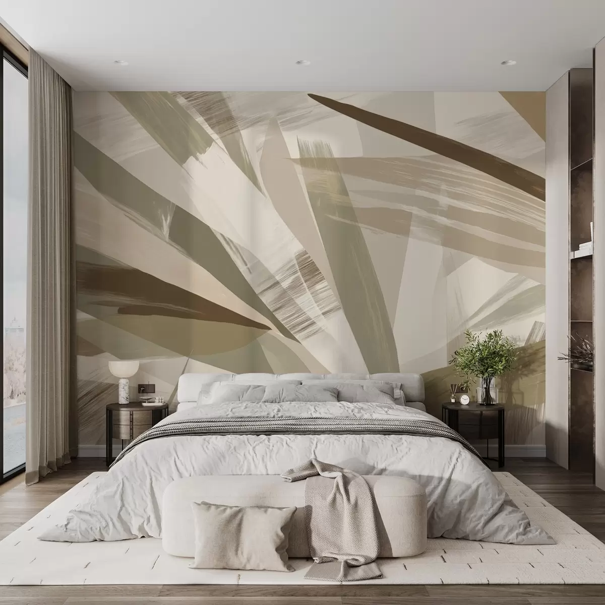 Фототапет Абстрактни листа в зелени и бежови тонове Nr w09091