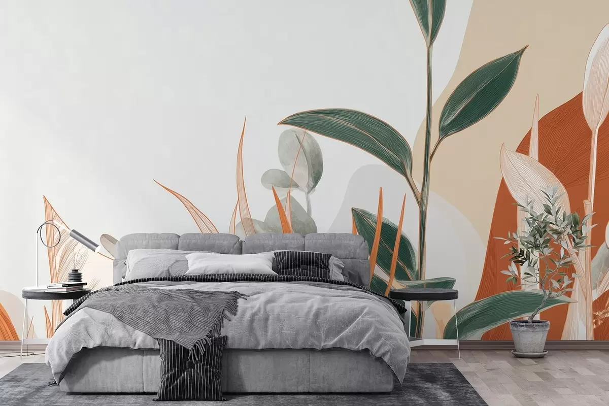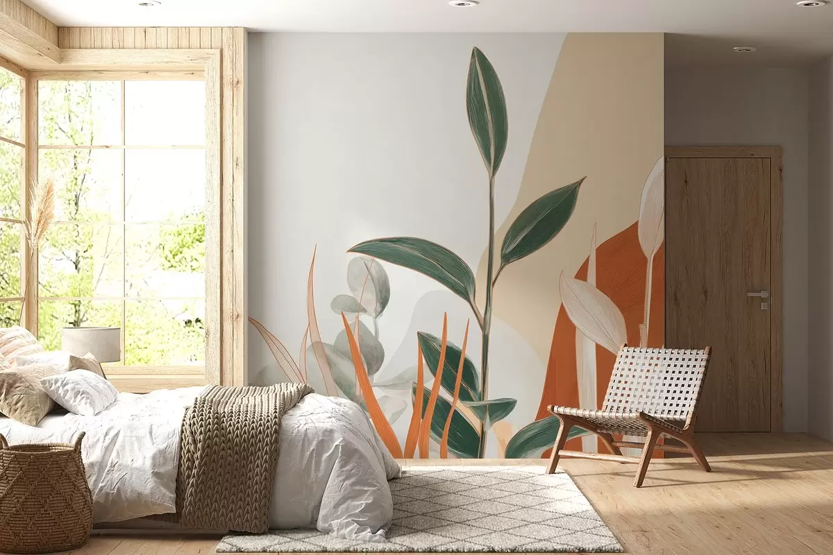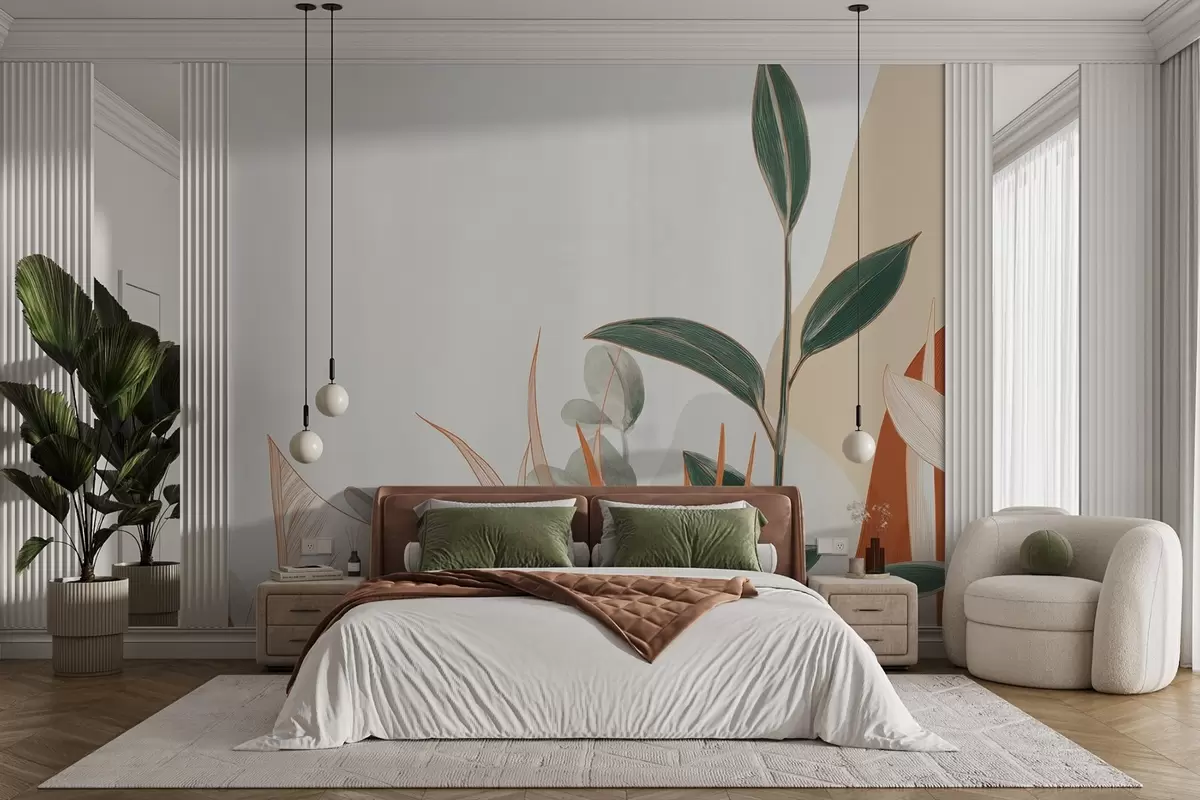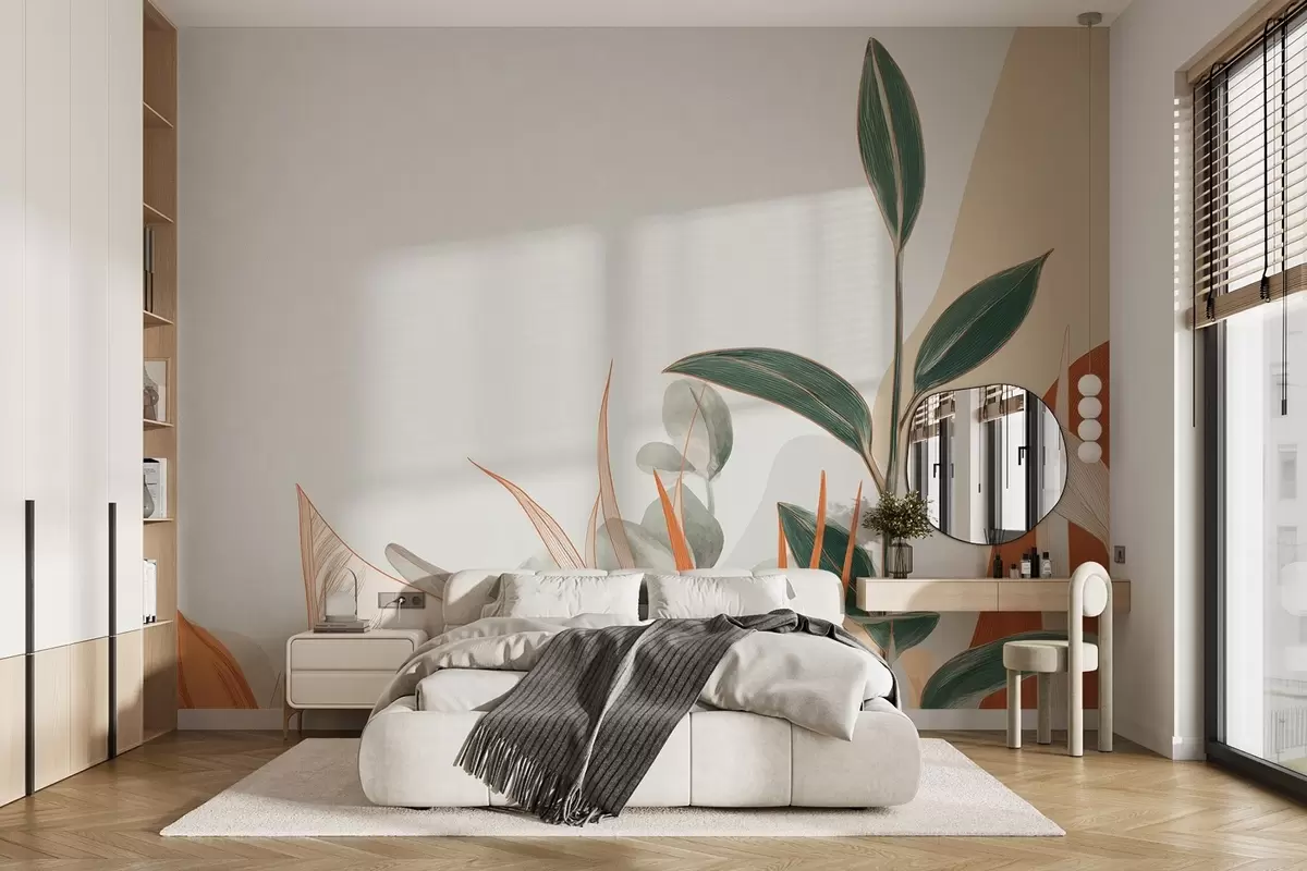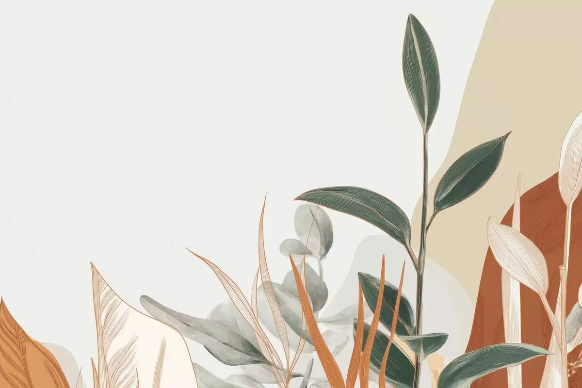 Фототапет Листа в бежови и зелени тонове Nr w09101