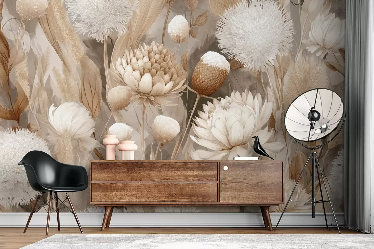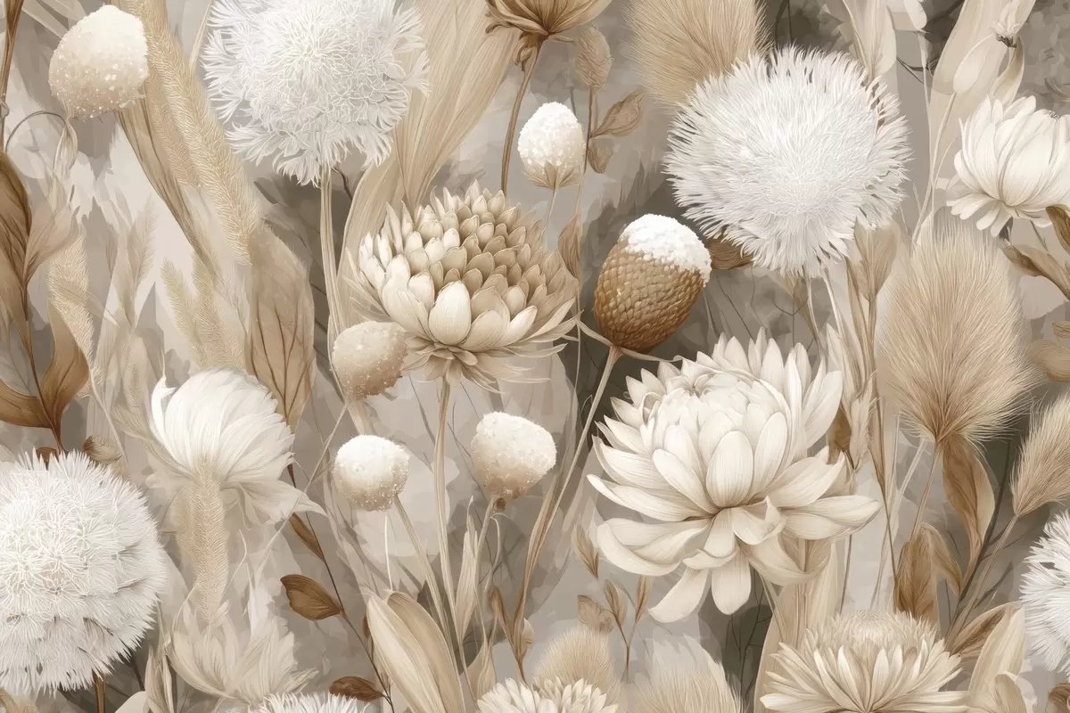 Фототапет Бохо хармония: Текстурирани цветя в бежови и кремави тонове Nr w09121
