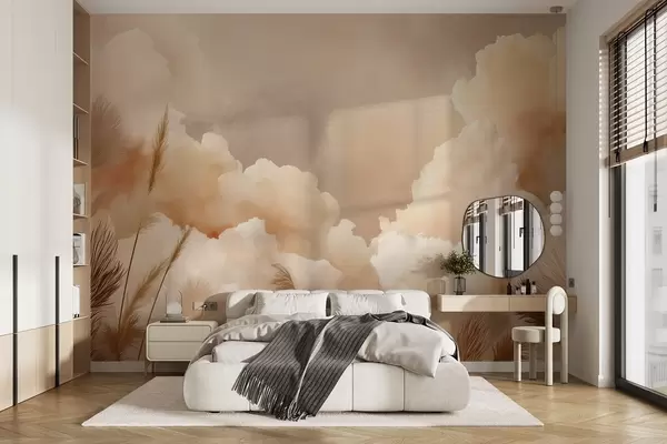 Фототапет Бежово небе с топли облаци и пампасна трева Nr w09124