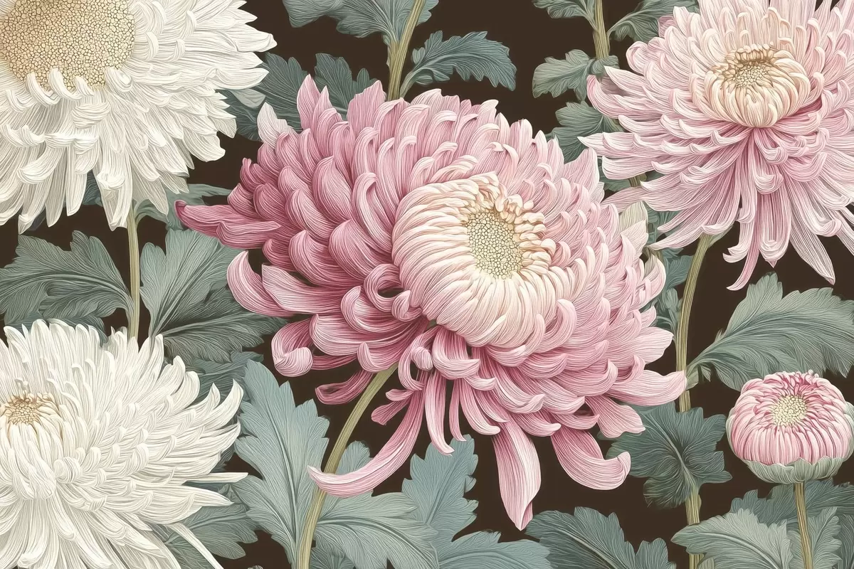 Фототапет Розови и бели големи орхидеи с листа на тъмен фон Nr w09125