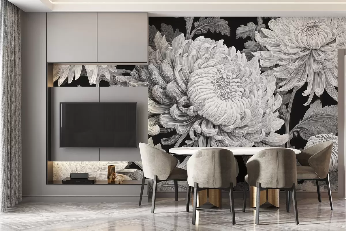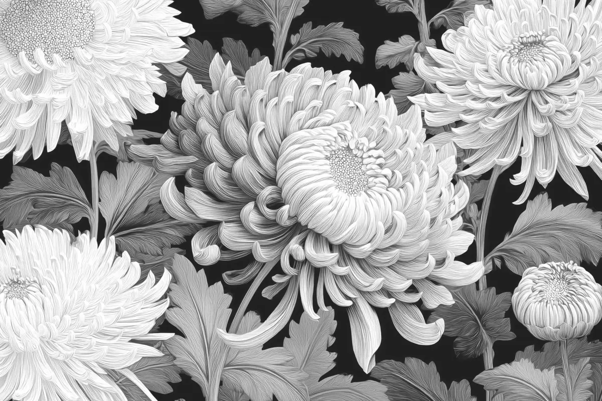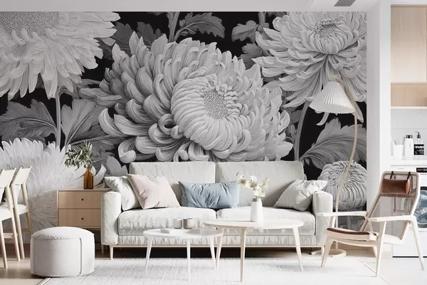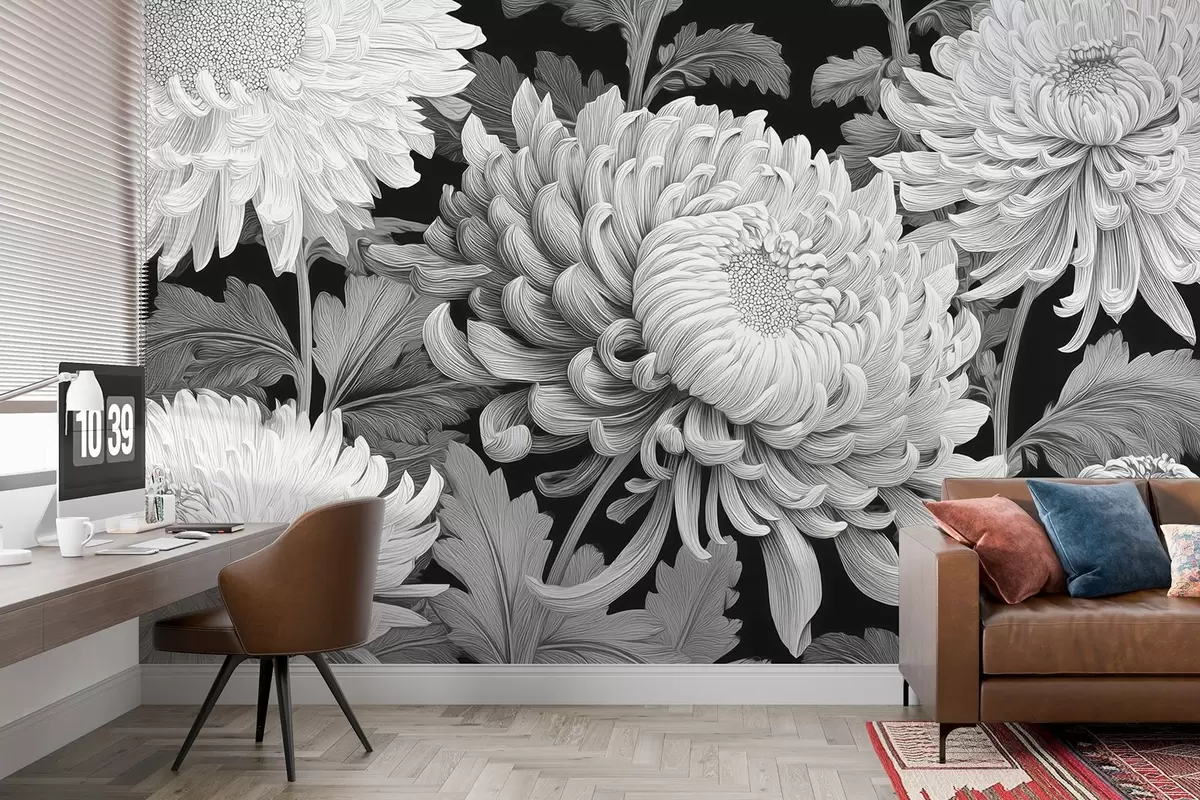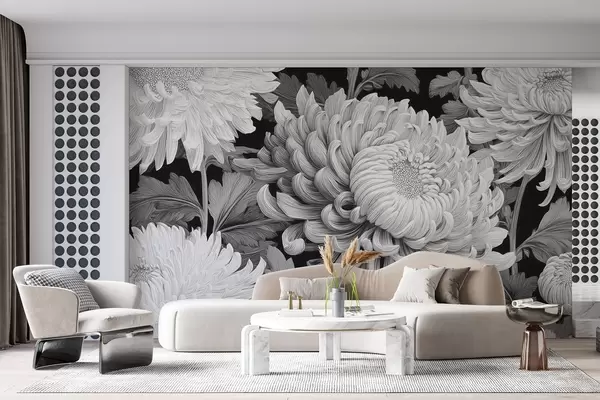 Фототапет Черно-бели големи орхидеи с листа Nr w09125v1