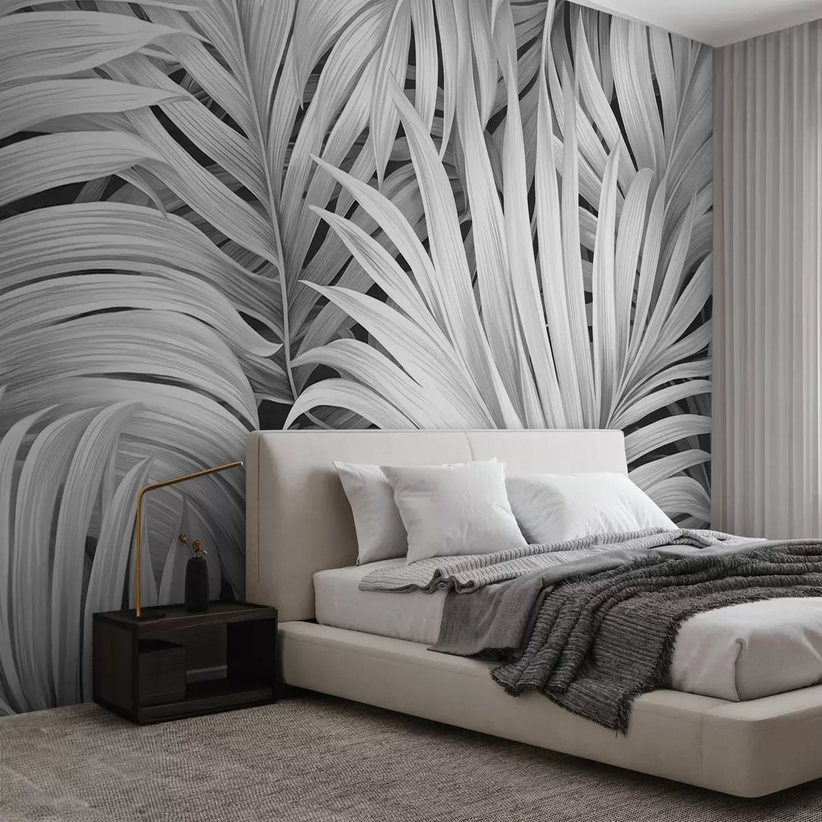 Фототапет Едноцветни текстурирани тропически палмови листа, създаващи тропически и ботанически принт Nr w09145