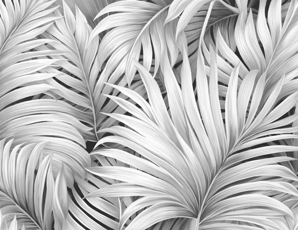 Фототапет Едноцветни текстурирани тропически палмови листа, създаващи тропически и ботанически принт Nr w09145