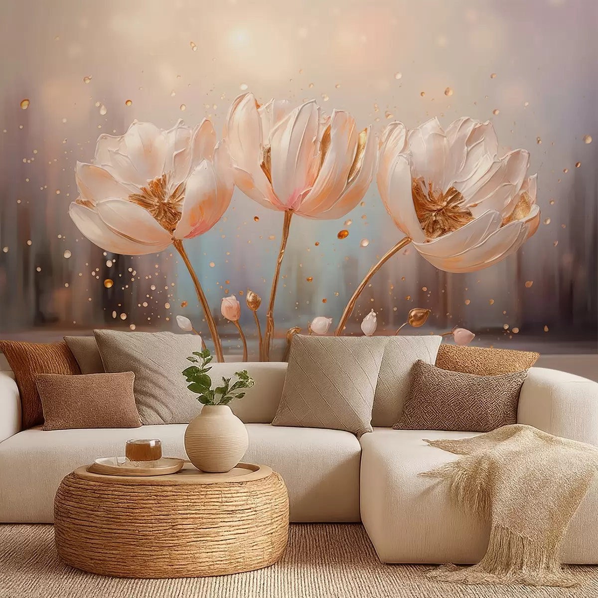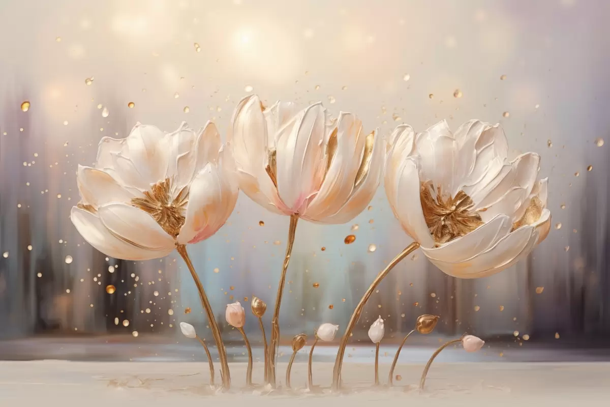 Фототапет Деликатни обемни цветя при изгрев слънце Nr w09148