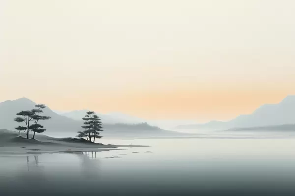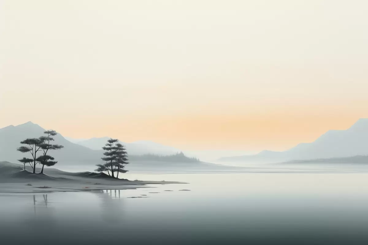 Фототапет Минималистичен пейзаж с мъгливи планини и езеро Nr w09151