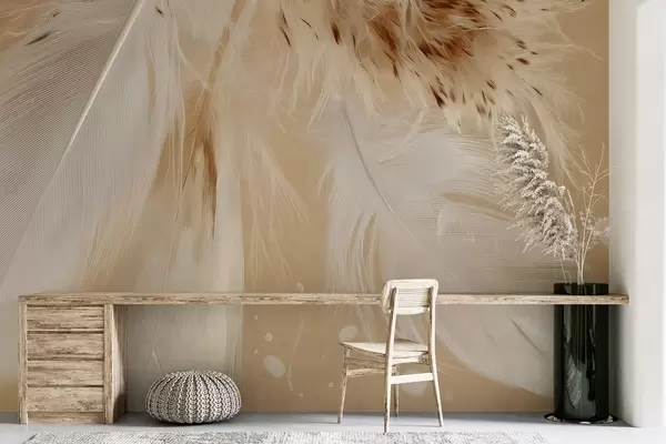Фототапет Леки пера в топли бежови и бели тонове Nr w09153