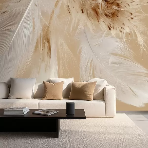 Фототапет Леки пера в топли бежови и бели тонове w09153