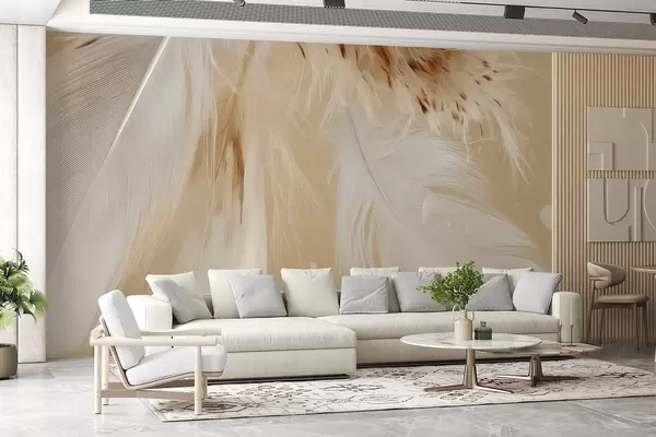 Фототапет Леки пера в топли бежови и бели тонове Nr w09153