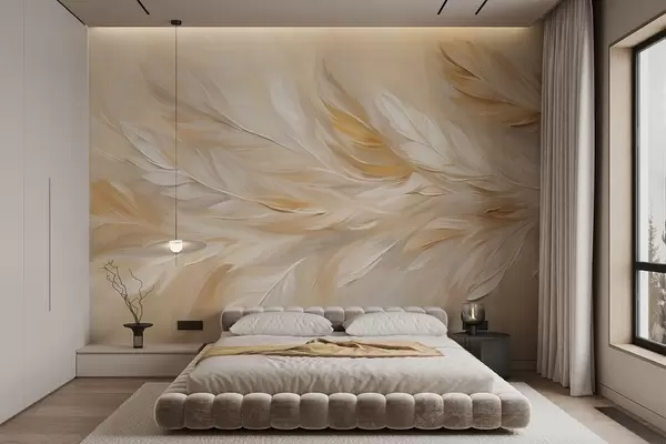 Фототапет Бели и бежови пера, подредени в плавен принт, мека текстура, топла цветова палитра, абстрактен фон Nr w09191