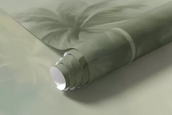 Фототапет Пейзаж от Гунгле с буйни зелени палми и хълмове , меки пастелни цветове, текстурирана имитация на живопис Nr w09194