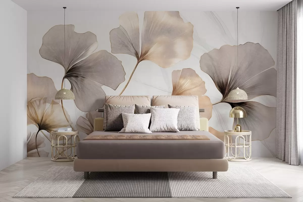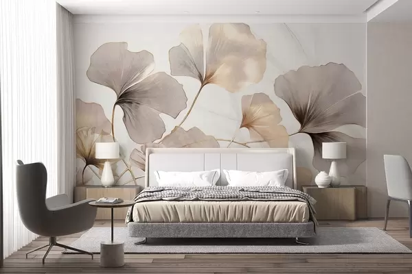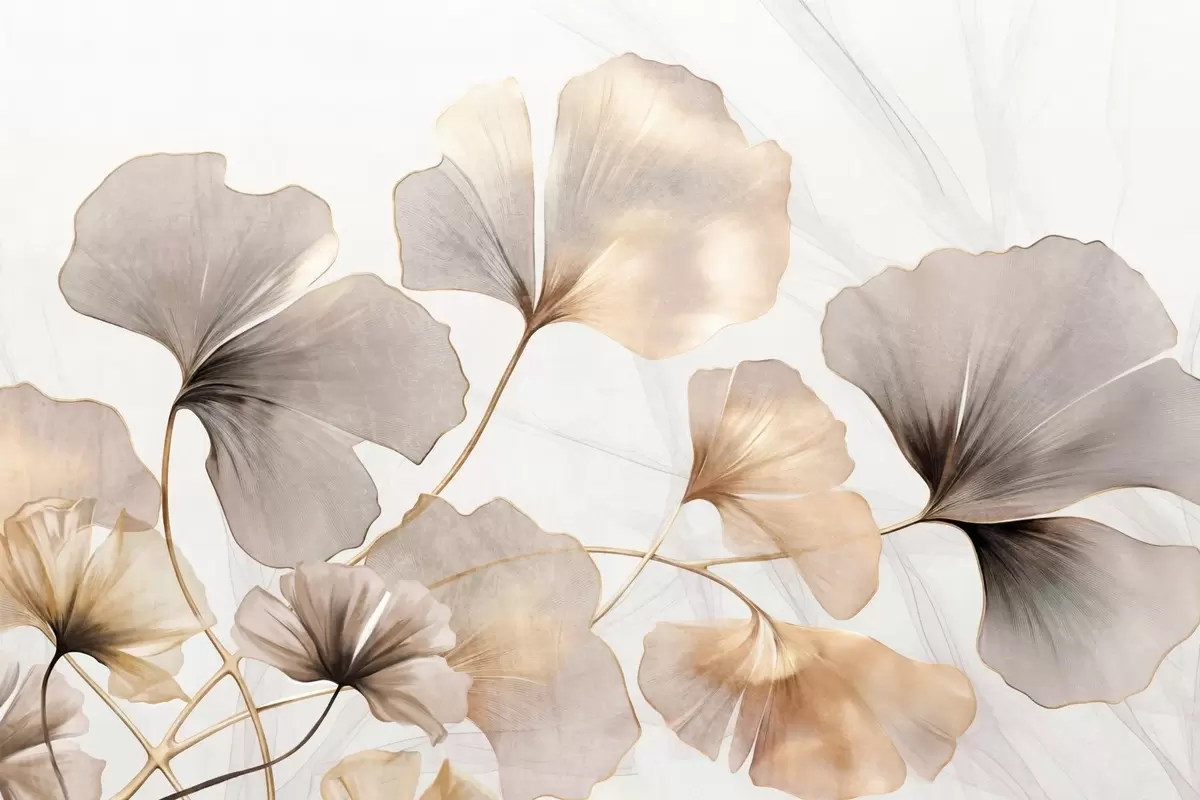 Фототапет Листа от гинко билоба в бежови, жълти и кафяви тонове, деликатен акварелен ефект, светъл фон Nr w09215