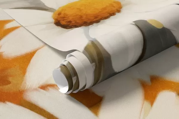 Фототапет Поле от бели маргаритки с жълти центрове на мек жълт и бежов фон, в акварелен стил Nr w09218