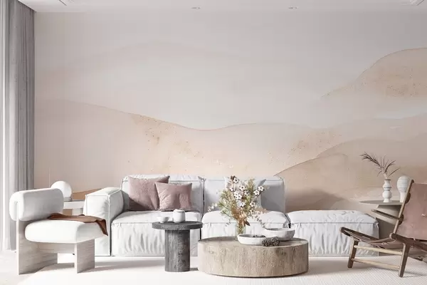 Фототапет Планини в акварелен стил в светлобежови нюанси Nr w09223