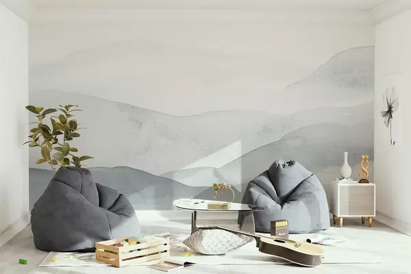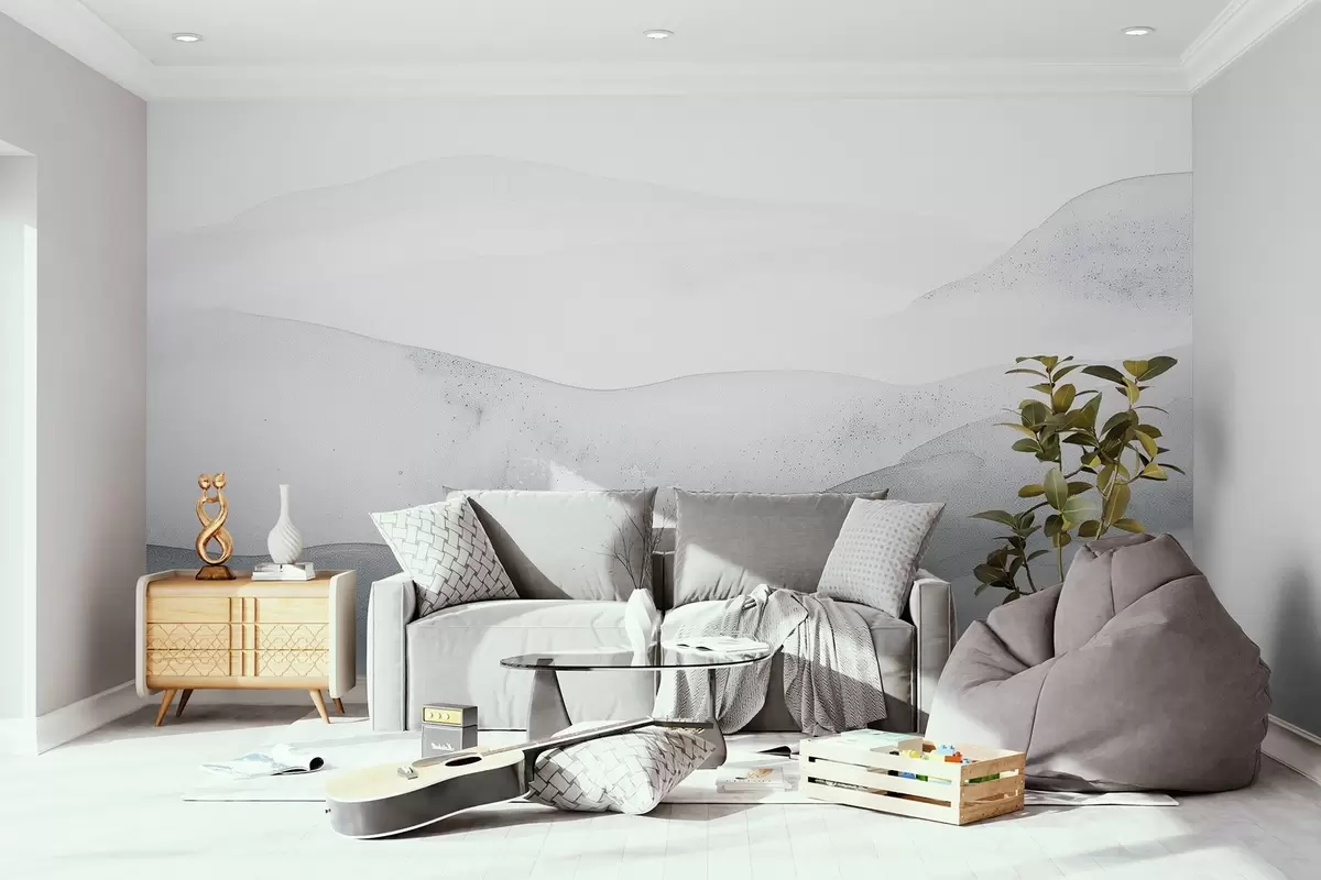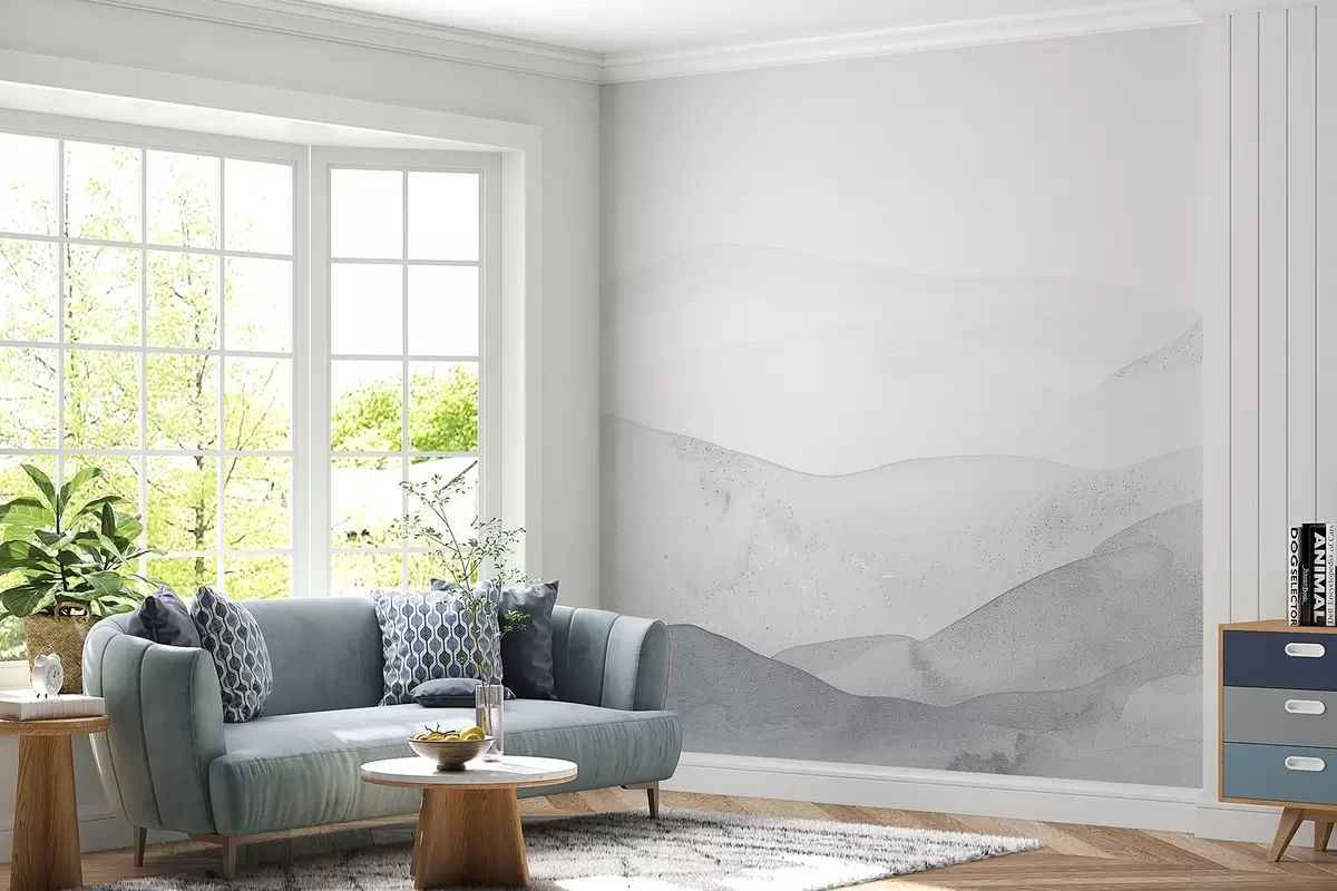 Фототапет Минималистични мъгливи планини в меки сини нюанси Nr w09223v2