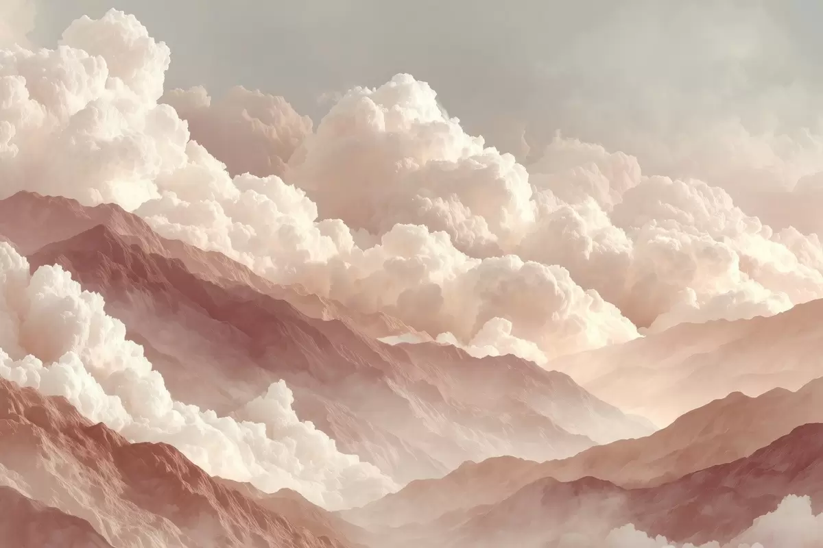 Фототапет Топъл изгрев над планините с пухкави облаци Nr w09226