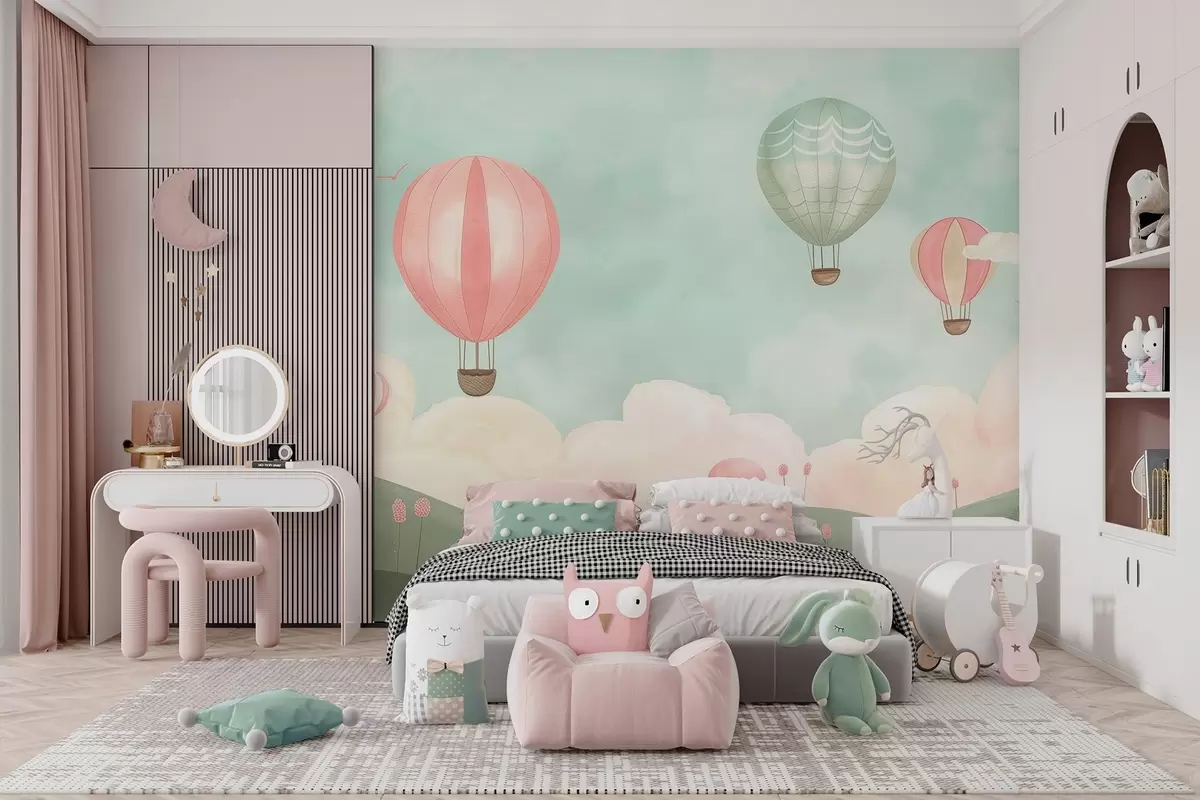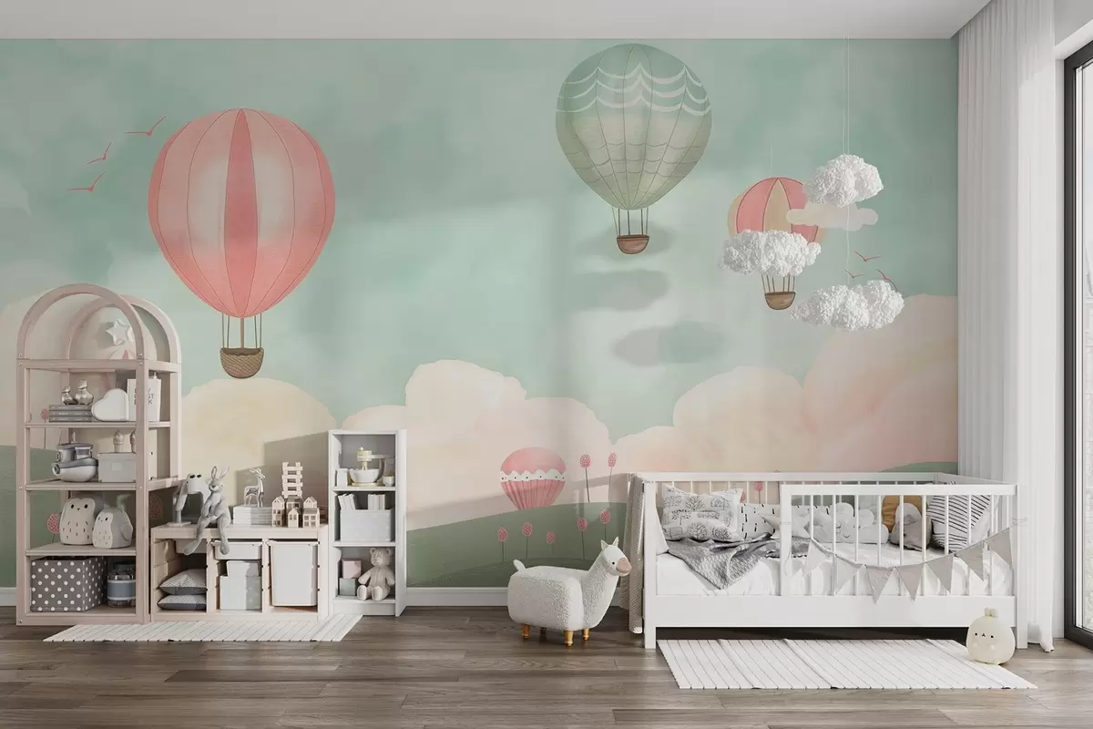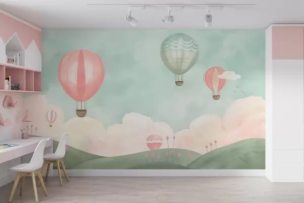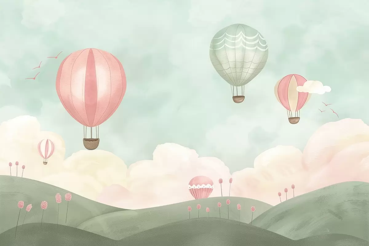 Фототапет Балони с горещ въздух над хълмове с облаци Nr w09228