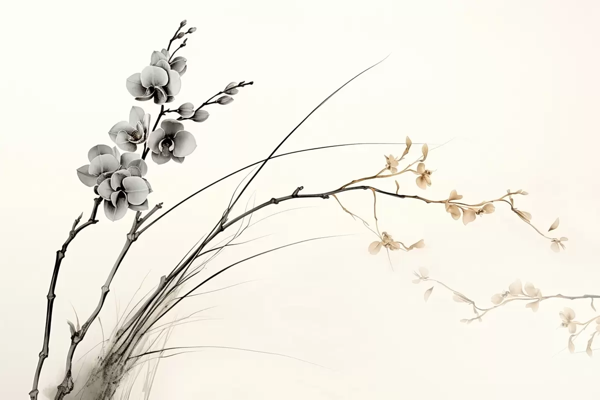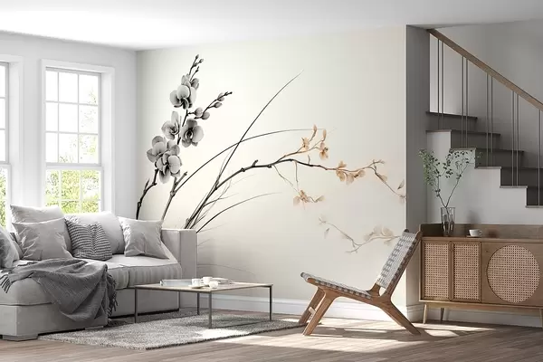 Фототапет Минималистичен клон на орхидея в меки сепия и сиви тонове Nr w09250