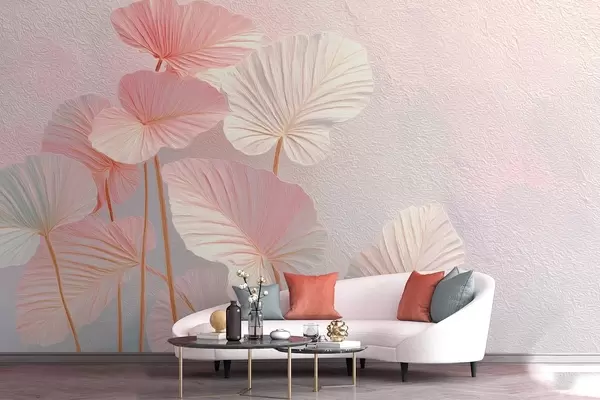 Фототапет Елегантни големи тропически листа в нежни розови и сини нюанси Nr w09252