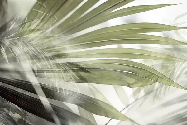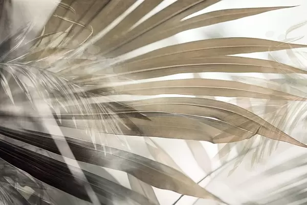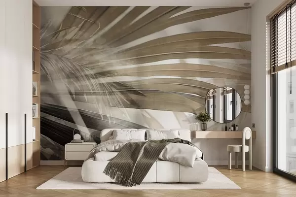Фототапет Палмови листа със светлокафяв оттенък, които се припокриват и създават ефект на наслояване, на мек, неутрален фон Nr w09256