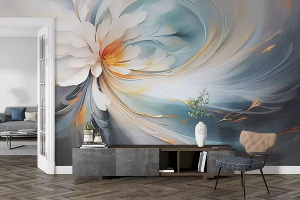 Фототапет Абстрактно цвете в меки сини и оранжеви тонове Nr w09270