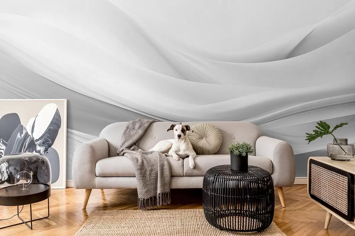 Фототапет Сиви вълни от плат в минималистичен абстрактен стил Nr w09279v1