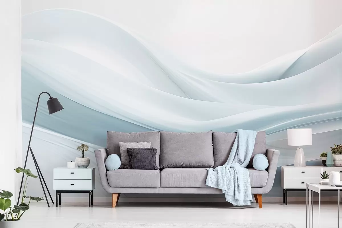 Фототапет Сини вълни от плат в минималистичен абстрактен стил Nr w09279v2