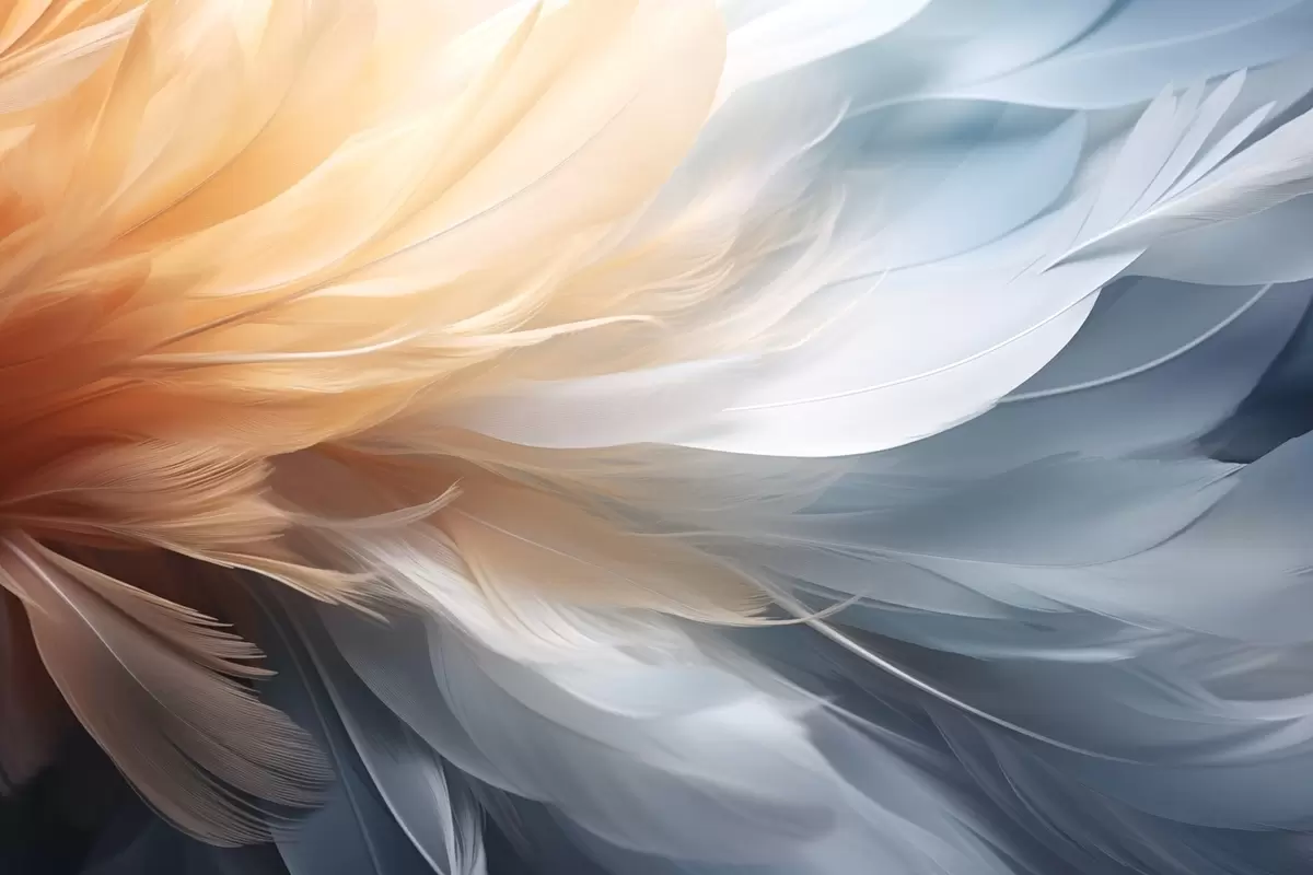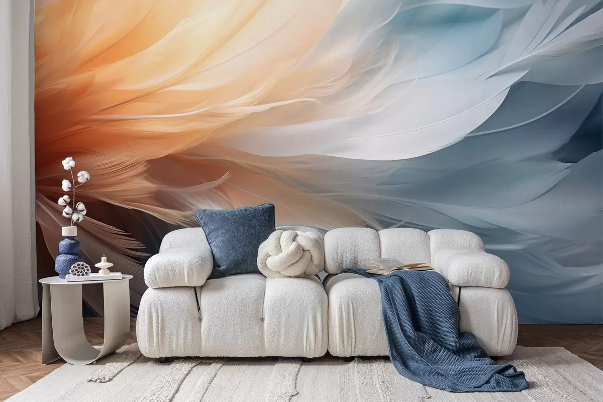 Фототапет Деликатни пера в оранжеви и сини градиентни тонове Nr w09282