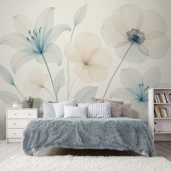 Фототапет Деликатни цветя в пастелно син и кремав акварелен стил Nr w09287