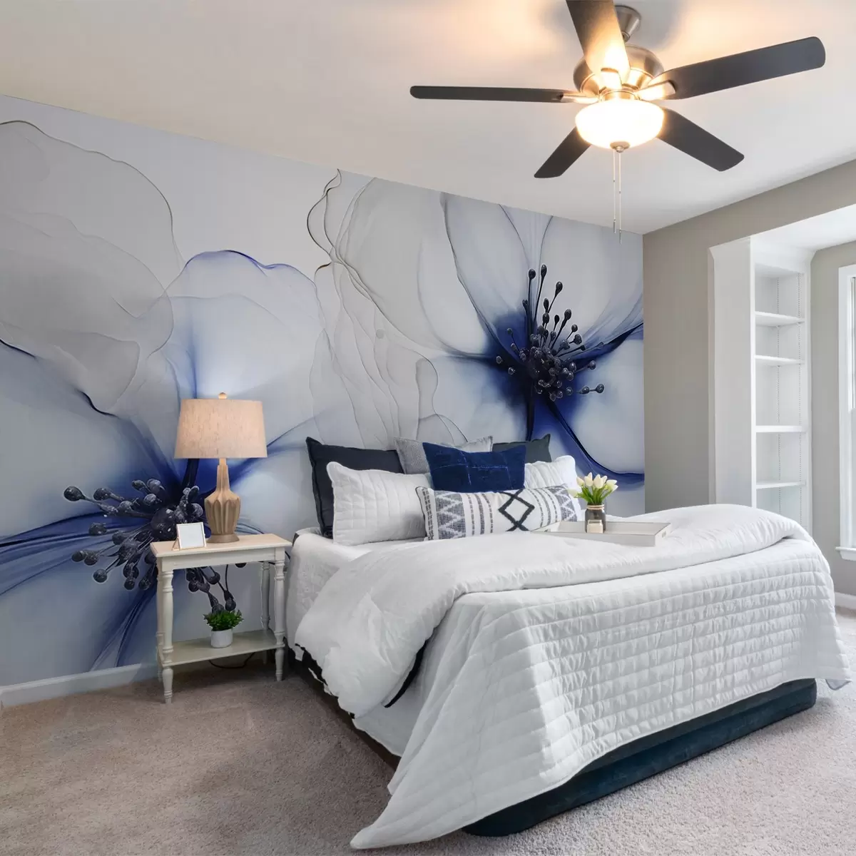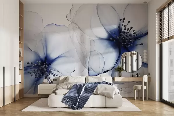 Фототапет Две полупрозрачни сини цветя с видими тичинки, припокриващи се деликатни венчелистчета и мека плавна текстура w09295v1