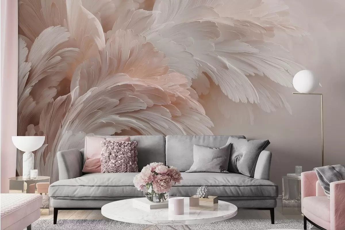 Фототапет Въздушни пера и венчелистчета в кремаво-розови нюанси Nr w09301