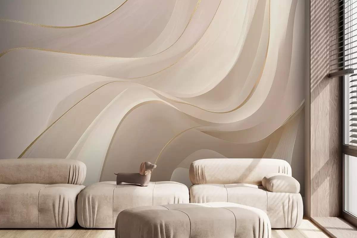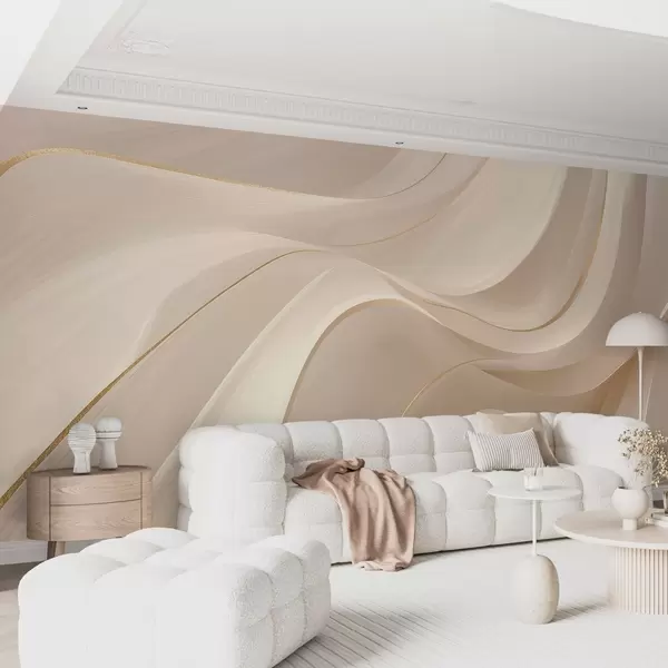 Фототапет Преливащи вълни с жълти акценти в кремава светлина Nr w09303