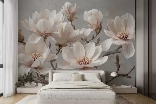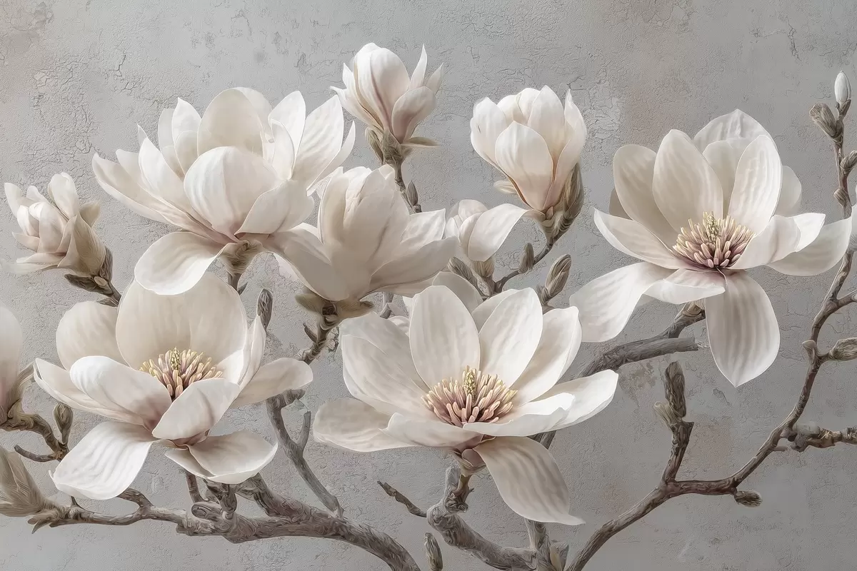 Фототапет Клони на магнолия с големи светли цветове в приглушени тонове Nr w09305