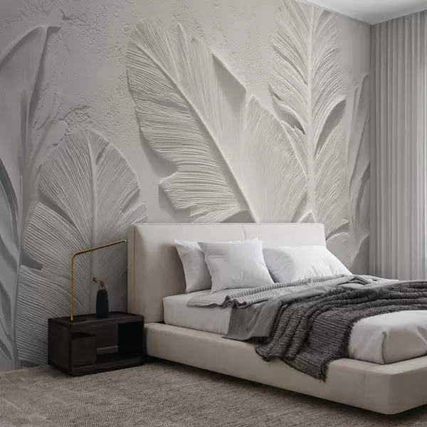 Фототапет Текстурирани сиви листа на фон с релеф от изкуствена мазилка Nr w09307