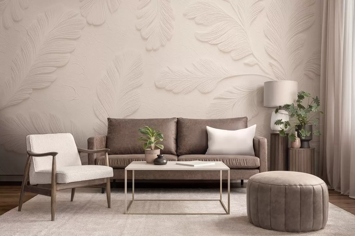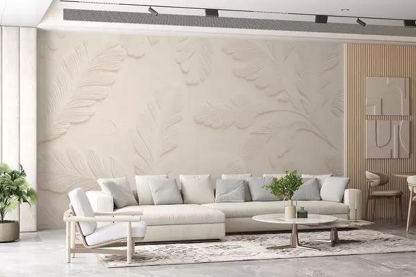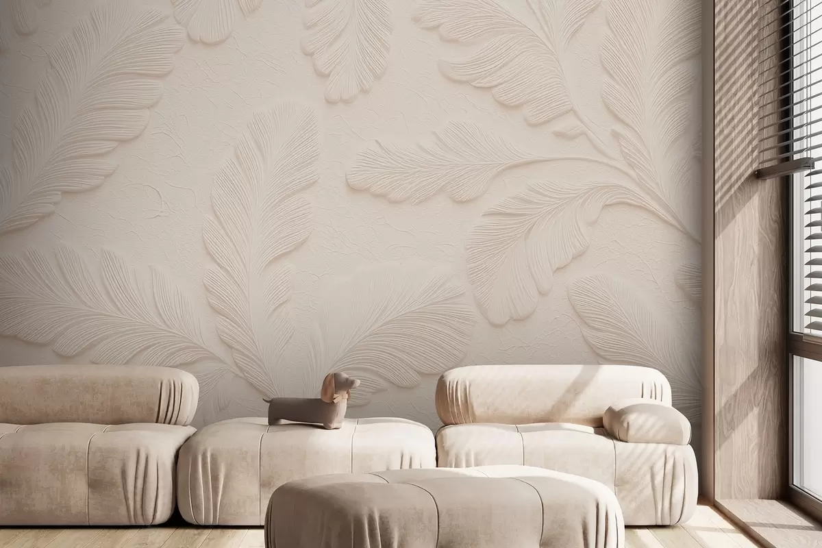Фототапет Релефни листа на светъл фон с ефект на напукване Nr w09309
