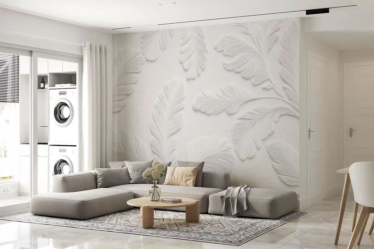Фототапет Релефни листа в сиво с ефект на напукана текстура Nr w09309v1