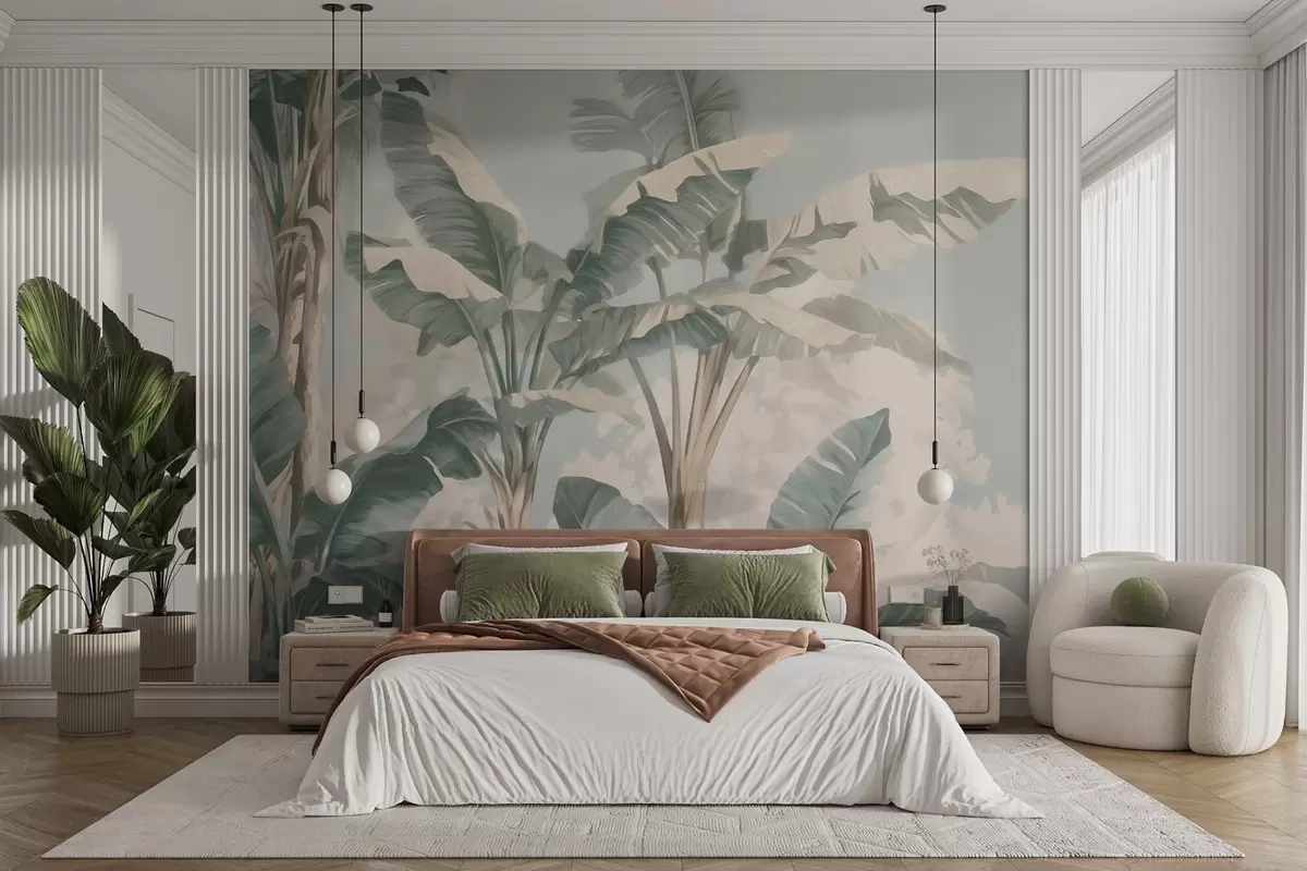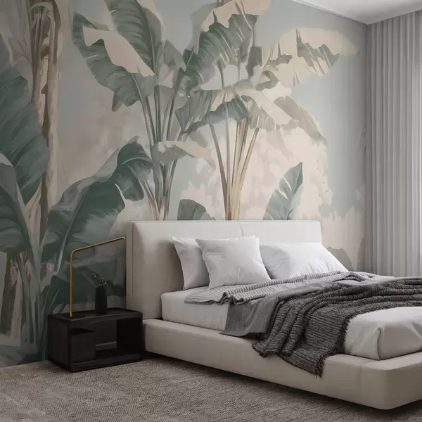 Фототапет Тропически бананови листа в меки пастелни тонове Nr w09311
