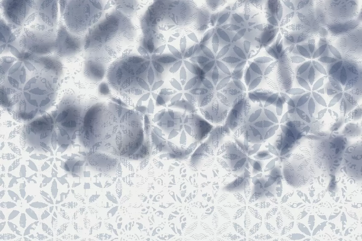 Фототапет Абстрактно текстурирано изкуство със син флорален принт, избледнял и размазан ефект, създаващ мека и мечтателна атмосфера Nr w09322