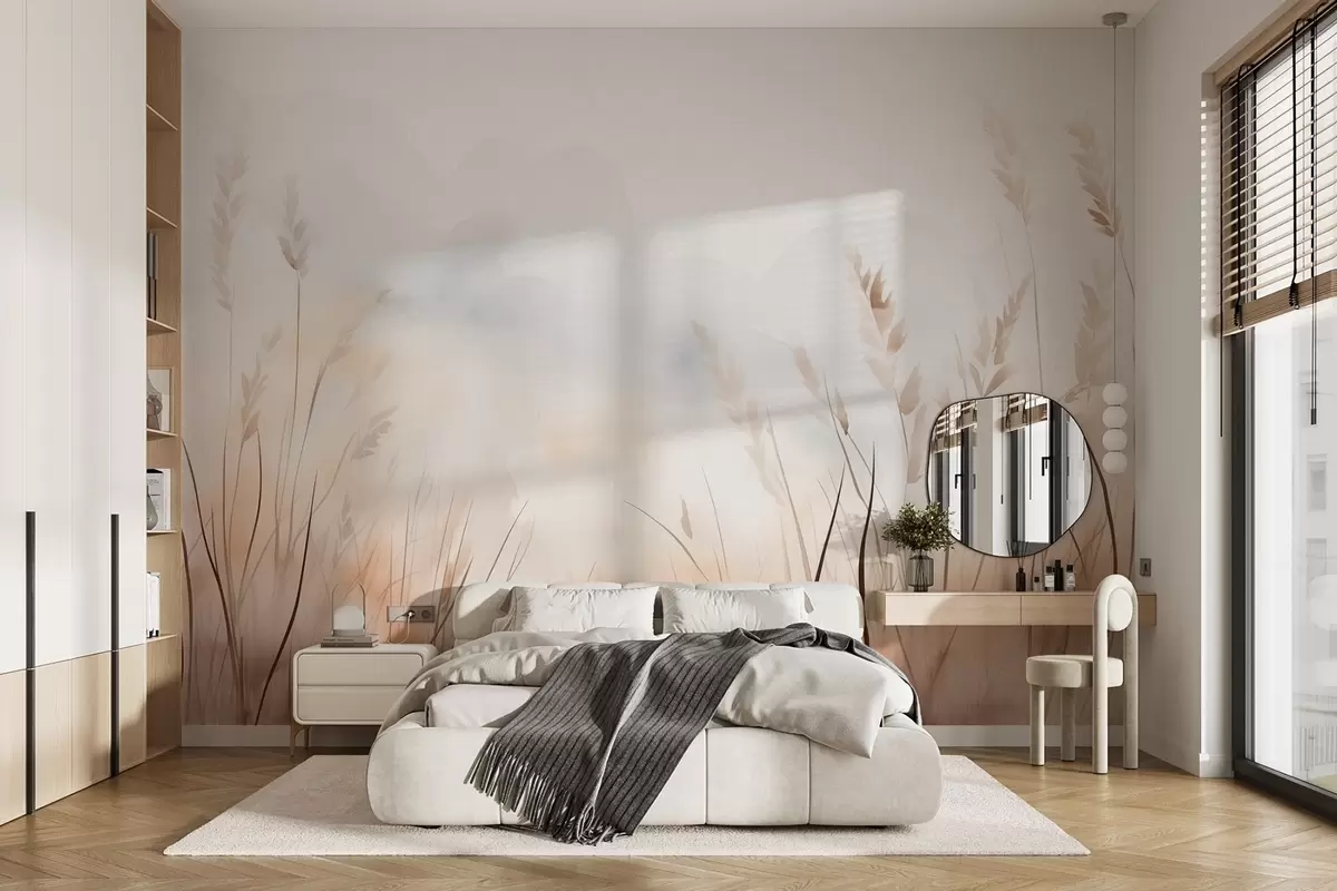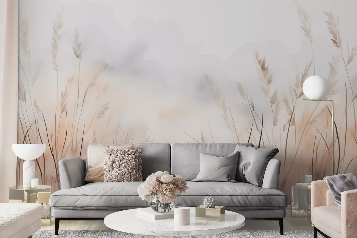 Фототапет Зърнени класове в мъгла в меки бежови и кафяви нюанси Nr w09327