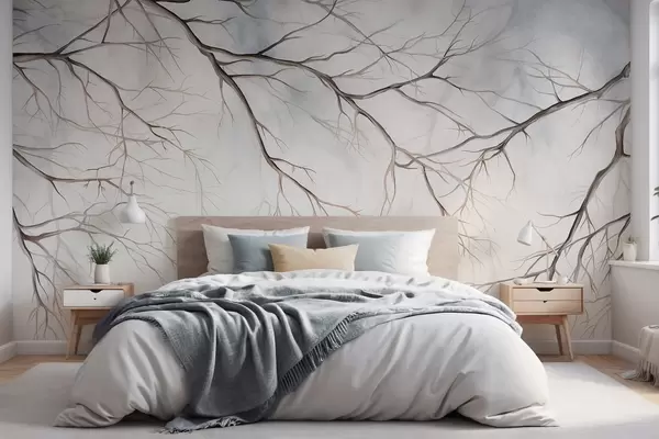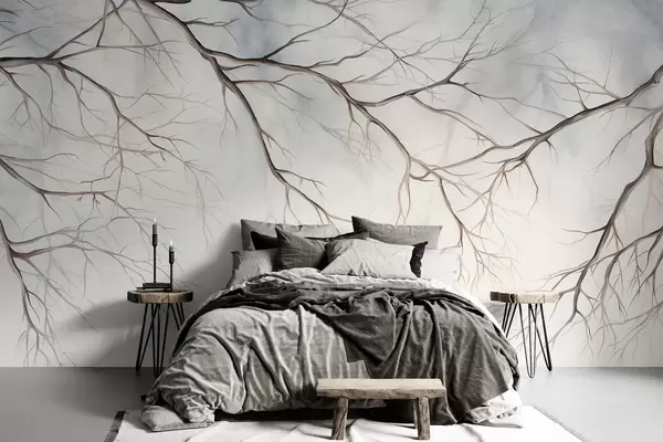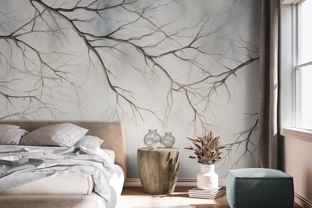 Фототапет Клони на дърво с акварелен текстурен ефект , сложни детайли, мека цветова палитра, на светъл фон Nr w09337