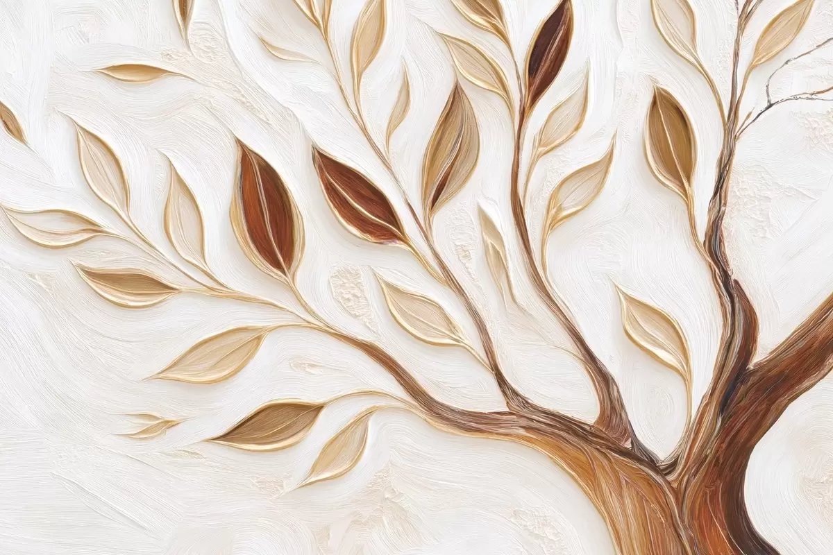 Фототапет Декоративно дърво с листа и имитация на текстуриран фон Nr w09349
