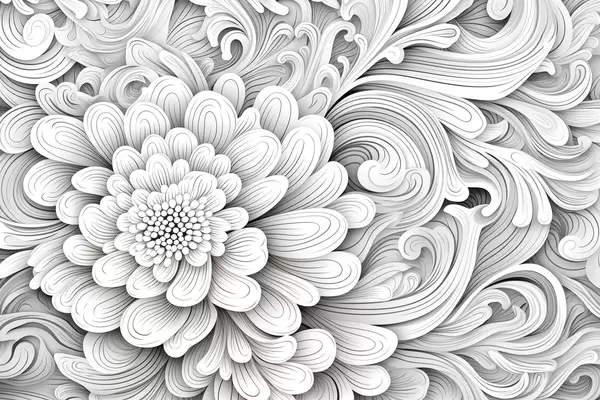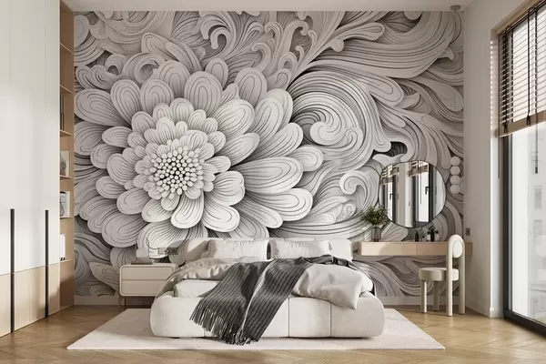 Фототапет Декоративен черно-бял десен под формата на цвете и вихри Nr w09355