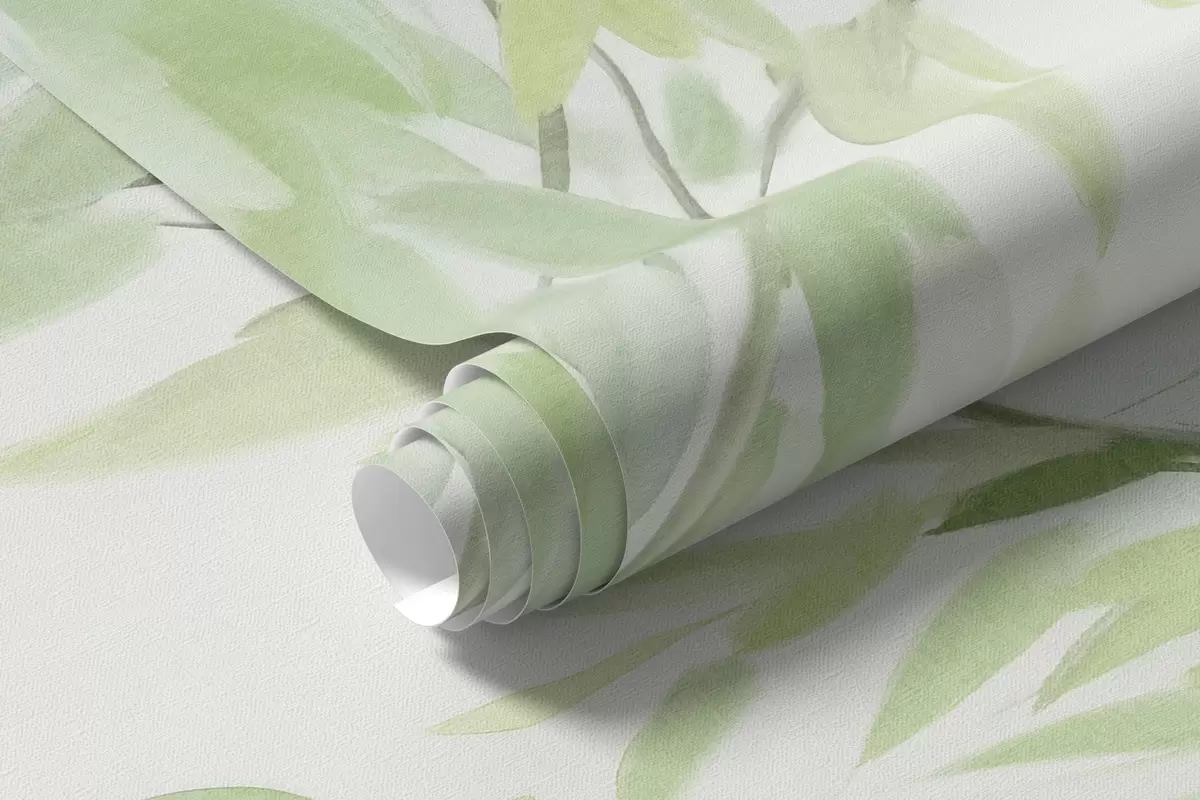 Фототапет Клони на плачеща върба със зелени листа, висящи надолу, меки и деликатни движения на четката, стил акварелна живопис Nr w09365