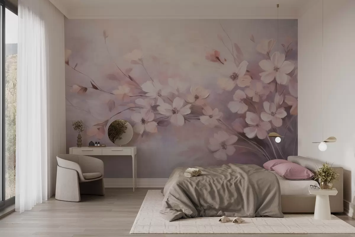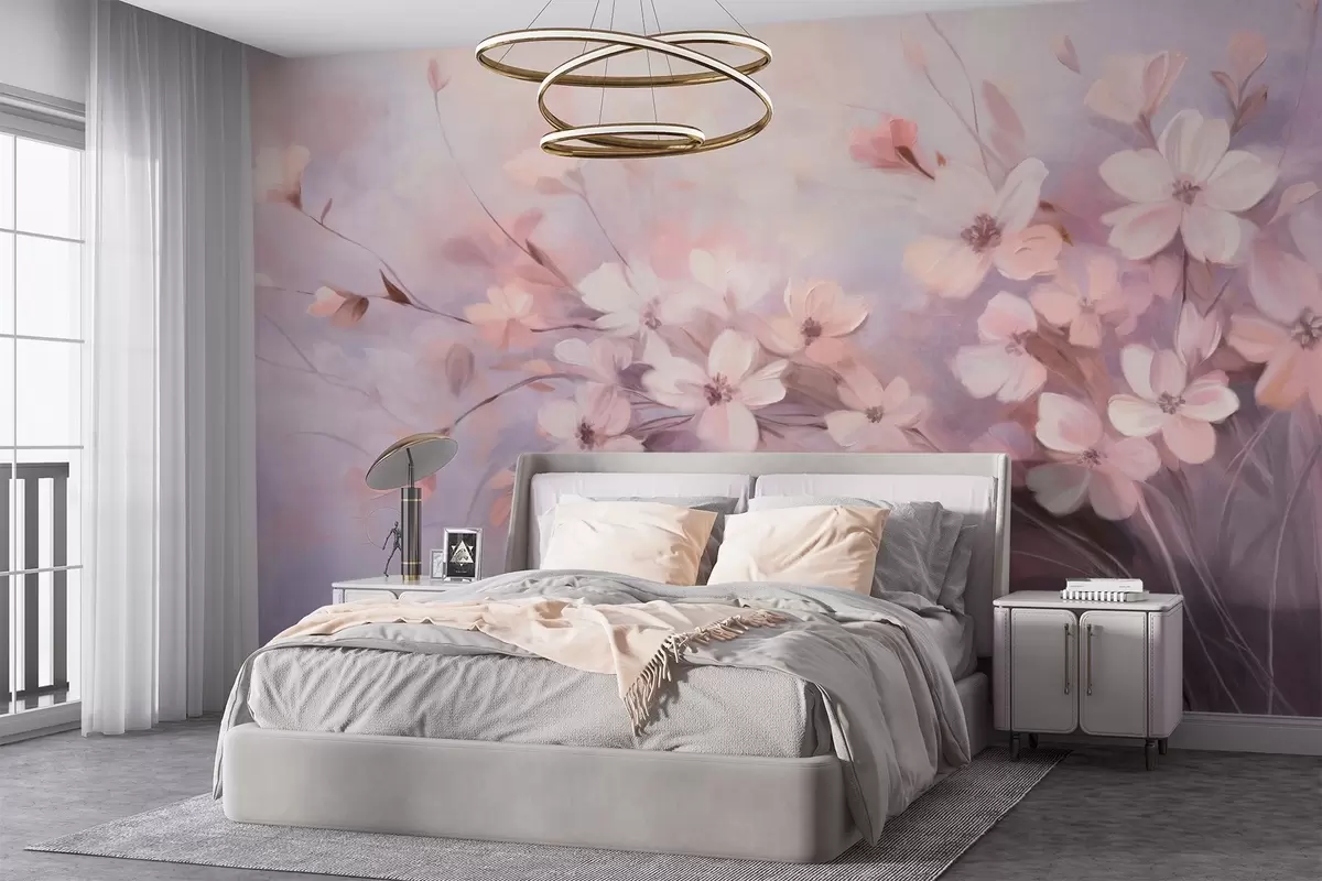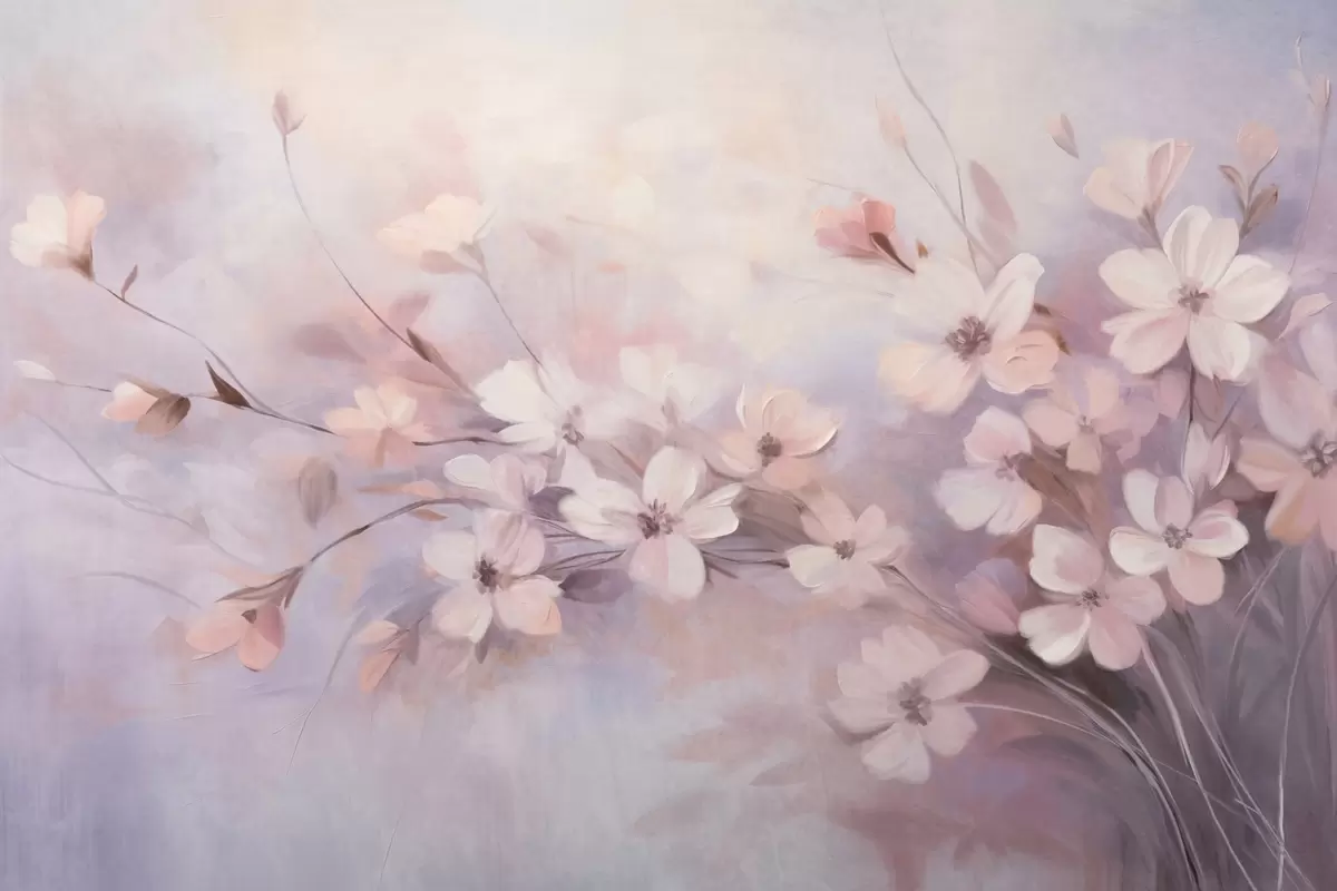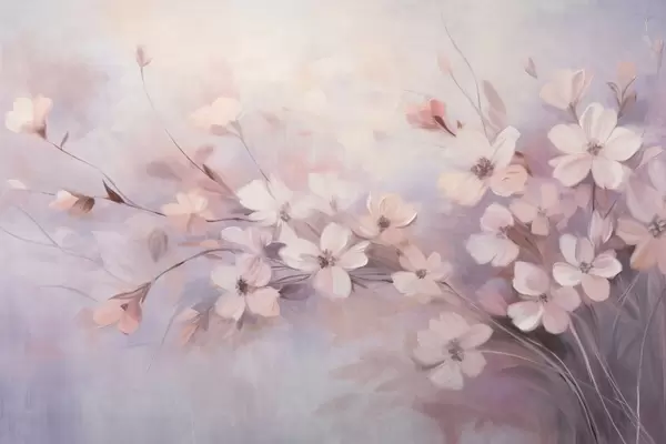 Фототапет Цветна аранжировка с нежни цветя с меки, размити краища на пастелен фон от лавандула и светлорозови нюанси Nr w09369