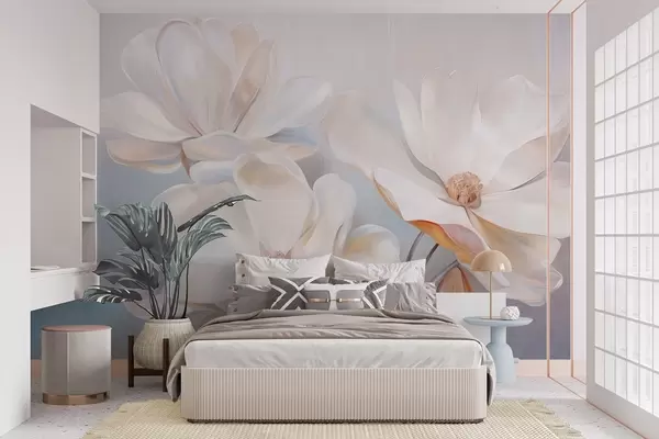 Фототапет Бели фантазийни магнолиеви цветя с нежни текстурирани венчелистчета, мек, абстрактен фон Nr w09373