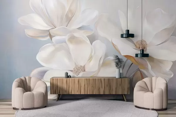 Фототапет Бели фантазийни магнолиеви цветя с нежни текстурирани венчелистчета, мек, абстрактен фон Nr w09373